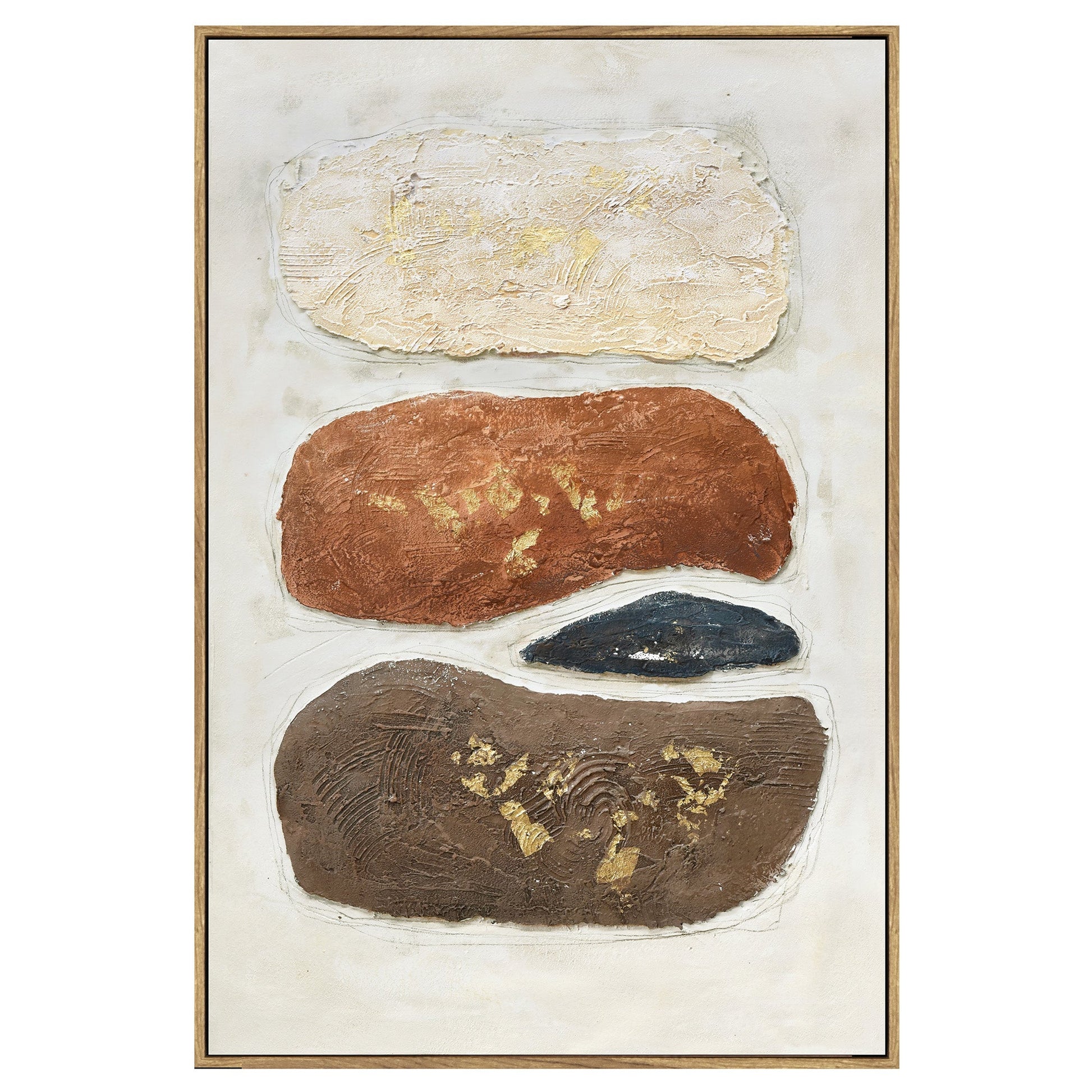 NNEDSZ 60X90cm Pebble Mosaic Dark Wood Framed Hand Painted Canvas Wall Art